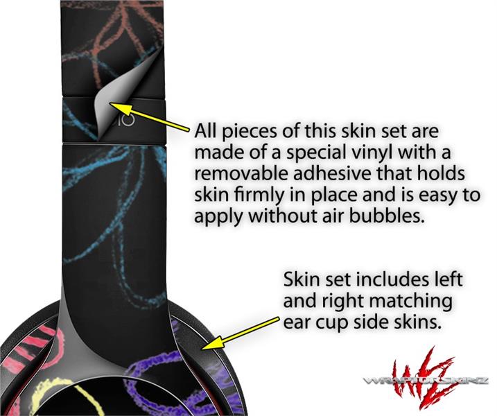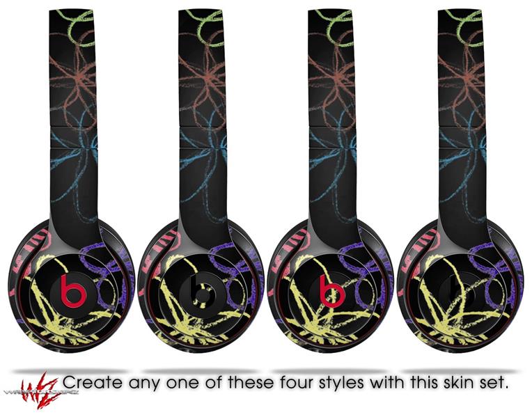 WraptorSkinz Skin Decal Wrap compatible with Beats Solo 2 and Solo 3 Wireless Headphones Kearas Flowers on Black (HEADPHONES NOT INCLUDED)