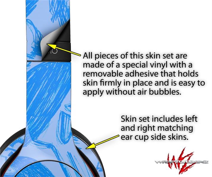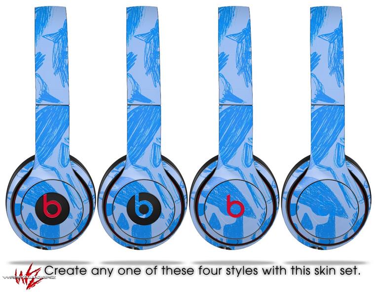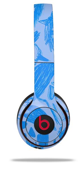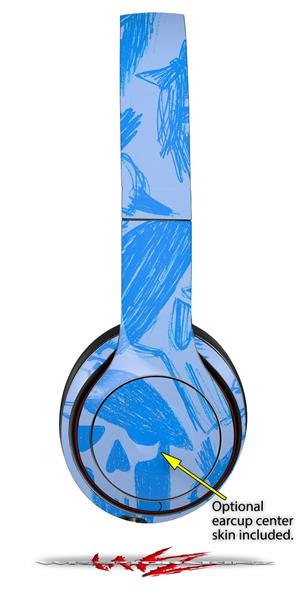 WraptorSkinz Skin Decal Wrap compatible with Beats Solo 2 and Solo 3 Wireless Headphones Skull Sketches Blue (HEADPHONES NOT INCLUDED)