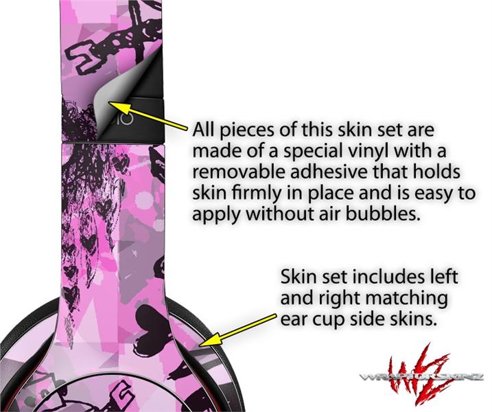 WraptorSkinz Skin Decal Wrap compatible with Beats Solo 2 and Solo 3 Wireless Headphones Scene Kid Sketches Pink (HEADPHONES NOT INCLUDED)