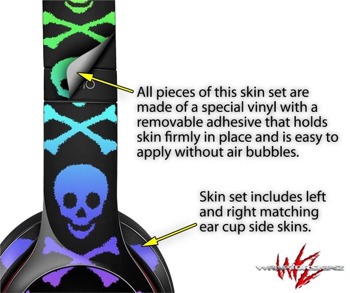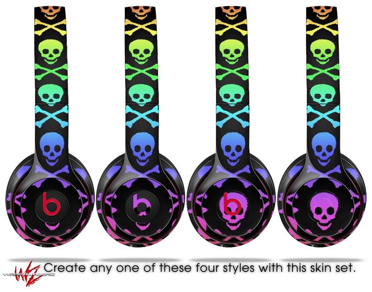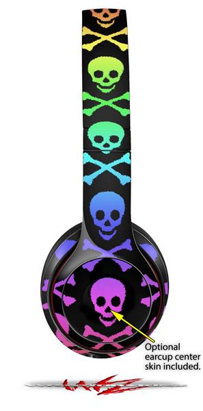 WraptorSkinz Skin Decal Wrap compatible with Beats Solo 2 and Solo 3 Wireless Headphones Skull and Crossbones Rainbow (HEADPHONES NOT INCLUDED)