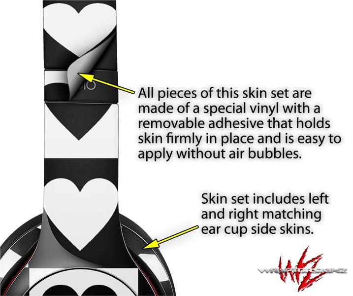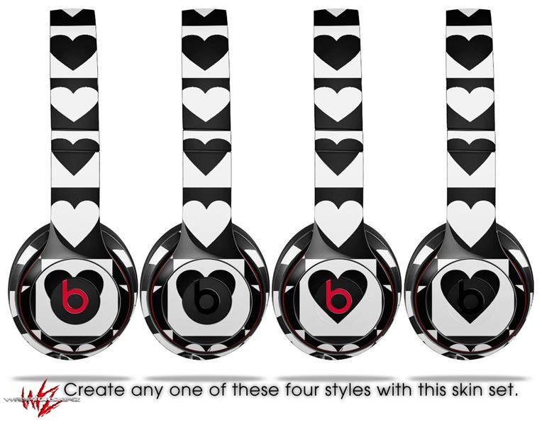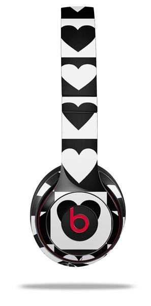 WraptorSkinz Skin Decal Wrap compatible with Beats Solo 2 and Solo 3 Wireless Headphones Hearts And Stars Black and White (HEADPHONES NOT INCLUDED)
