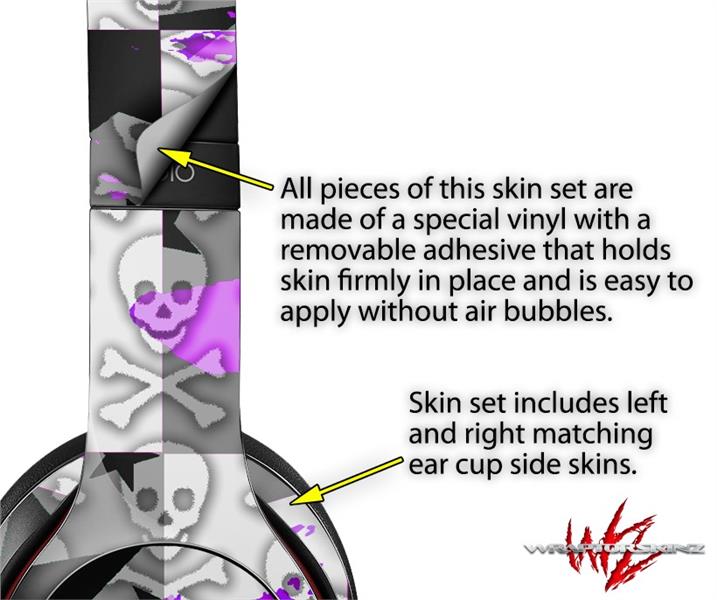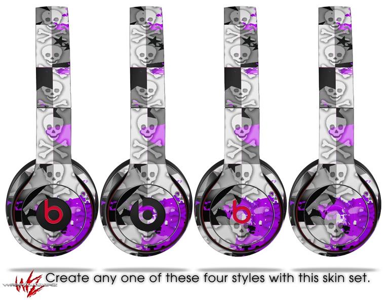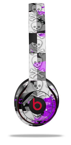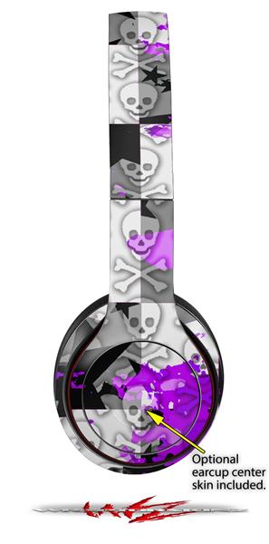 WraptorSkinz Skin Decal Wrap compatible with Beats Solo 2 and Solo 3 Wireless Headphones Purple Checker Skull Splatter (HEADPHONES NOT INCLUDED)