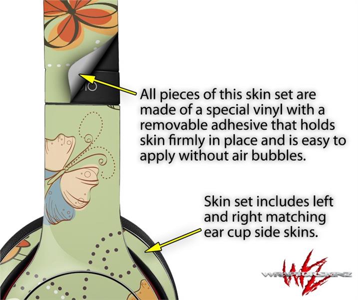 WraptorSkinz Skin Decal Wrap compatible with Beats Solo 2 and Solo 3 Wireless Headphones Birds Butterflies and Flowers (HEADPHONES NOT INCLUDED)