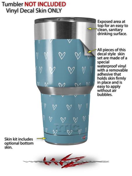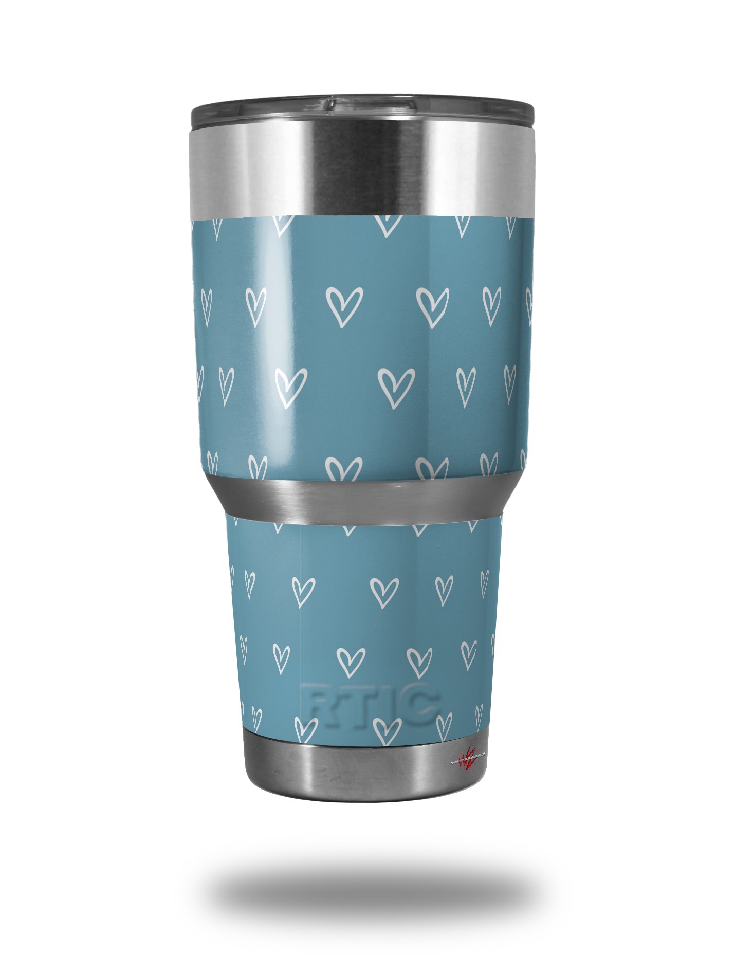 WraptorSkinz Skin Wrap compatible with RTIC 30oz ORIGINAL 2017 AND OLDER Tumblers Hearts Blue On White (TUMBLER NOT INCLUDED)