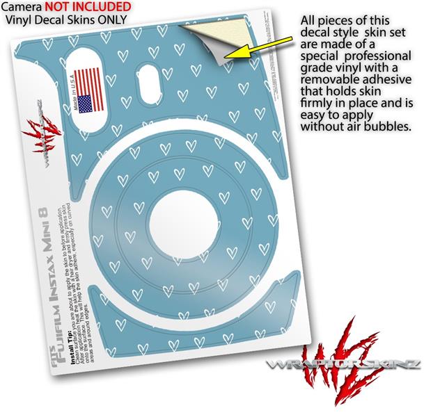 WraptorSkinz Skin Decal Wrap compatible with Fujifilm Mini 8 Camera Hearts Blue On White (CAMERA NOT INCLUDED)