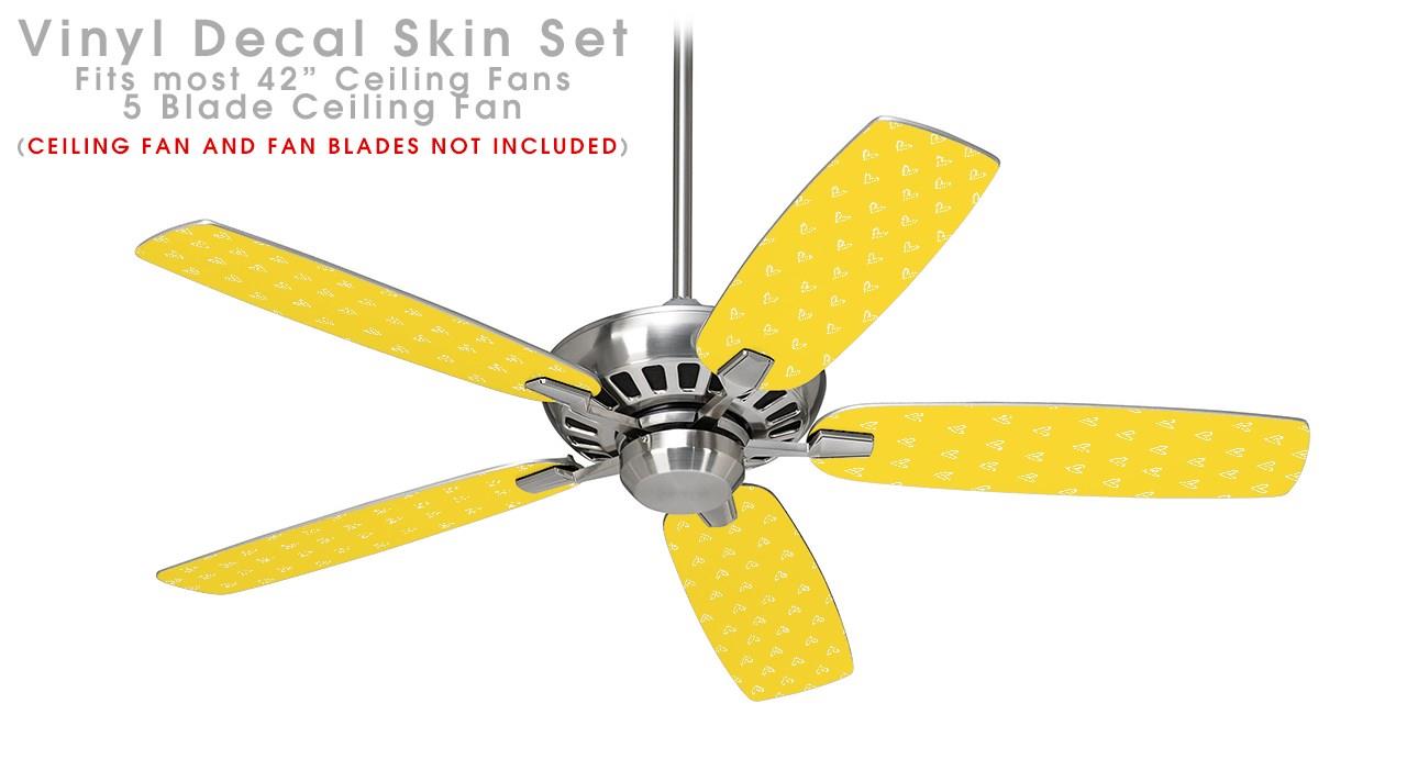 Hearts Yellow On White - Ceiling Fan Skin Kit fits most 42 inch fans (FAN and BLADES SOLD SEPARATELY)