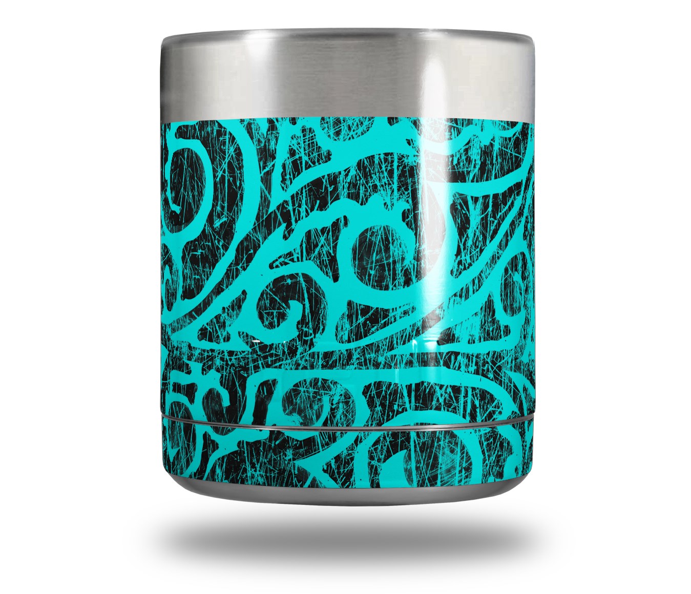 Skin Decal Wrap for Yeti Rambler Lowball - Folder Doodles Neon Teal