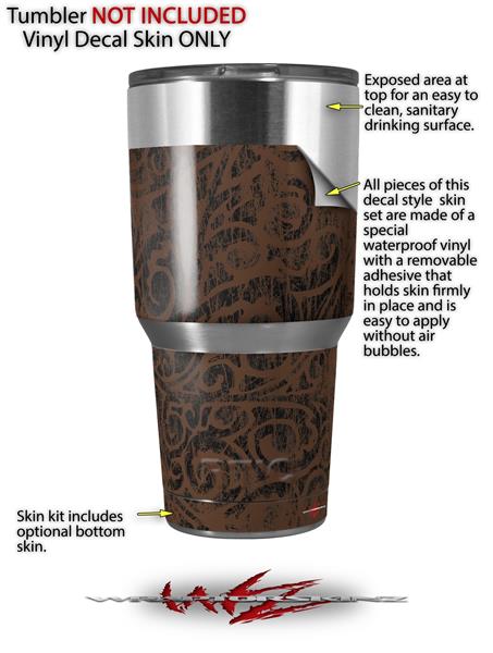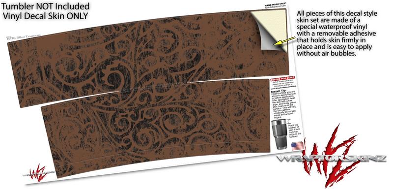 WraptorSkinz Skin Wrap compatible with RTIC 30oz ORIGINAL 2017 AND OLDER Tumblers Folder Doodles Chocolate Brown (TUMBLER NOT INCLUDED)