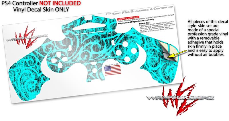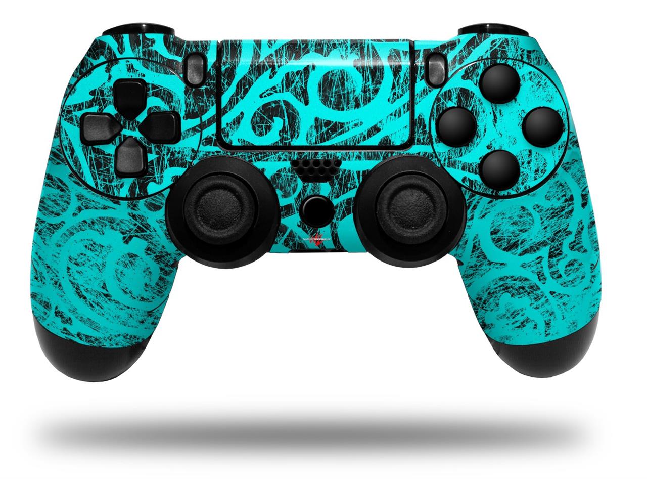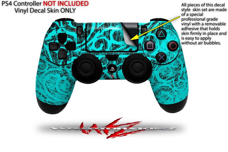 WraptorSkinz Skin compatible with Sony PS4 Dualshock Controller PlayStation 4 Original Slim and Pro Folder Doodles Neon Teal (CONTROLLER NOT INCLUDED)