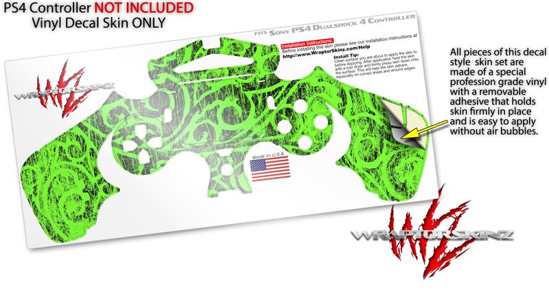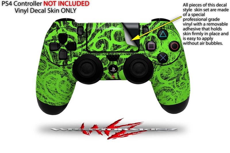 WraptorSkinz Skin compatible with Sony PS4 Dualshock Controller PlayStation 4 Original Slim and Pro Folder Doodles Neon Green (CONTROLLER NOT INCLUDED)