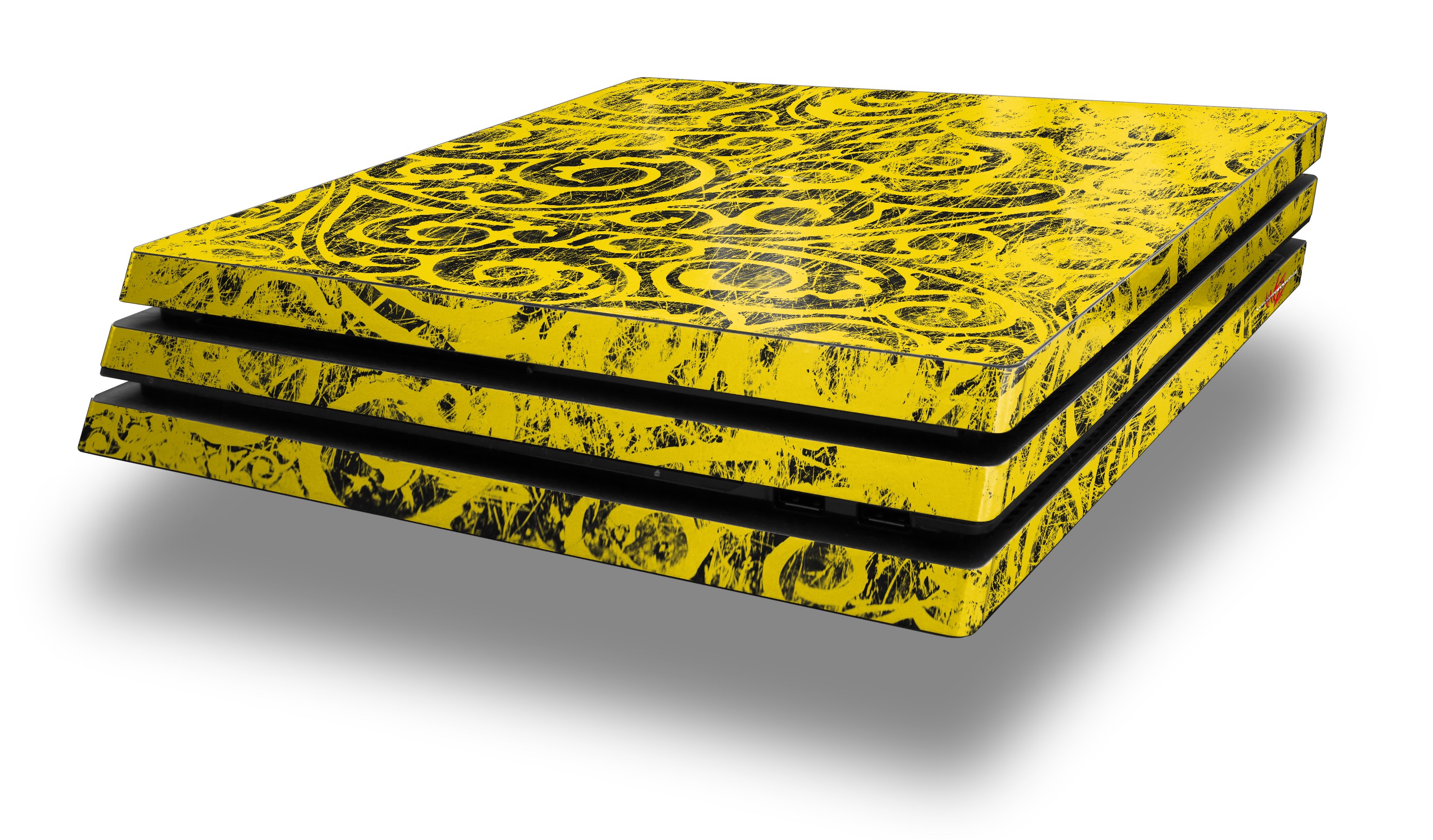 Vinyl Decal Skin Wrap compatible with Sony PlayStation 4 Pro Console Folder Doodles Yellow (PS4 NOT INCLUDED)