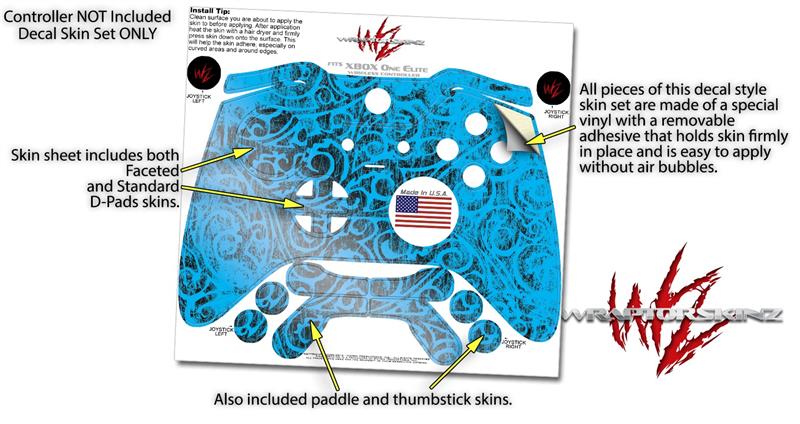 Folder Doodles Blue Medium - Decal Style Skin fits Microsoft XBOX One ELITE Wireless Controller