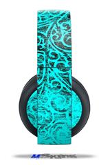Vinyl Decal Skin Wrap compatible with Original Sony PlayStation 4 Gold Wireless Headphones Folder Doodles Neon Teal (PS4 HEADPHONES NOT INCLUDED)