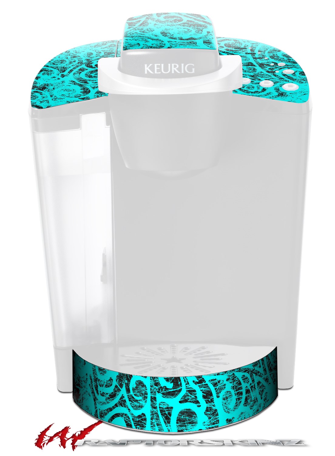 Decal Style Vinyl Skin compatible with Keurig K40 Elite Coffee Makers Folder Doodles Neon Teal (KEURIG NOT INCLUDED)