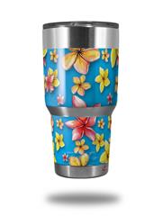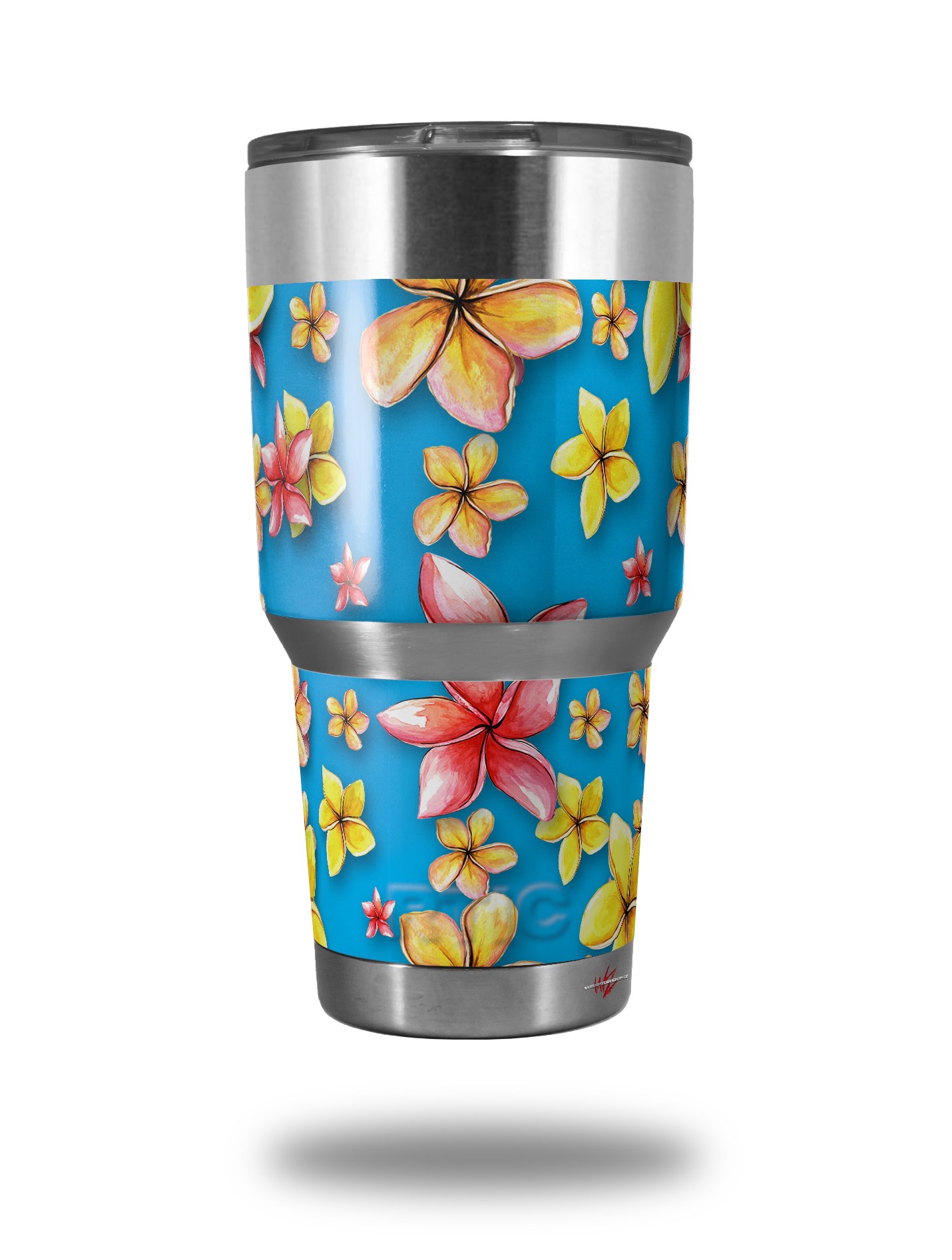 WraptorSkinz Skin Wrap compatible with RTIC 30oz ORIGINAL 2017 AND OLDER Tumblers Beach Flowers Blue Medium (TUMBLER NOT INCLUDED)