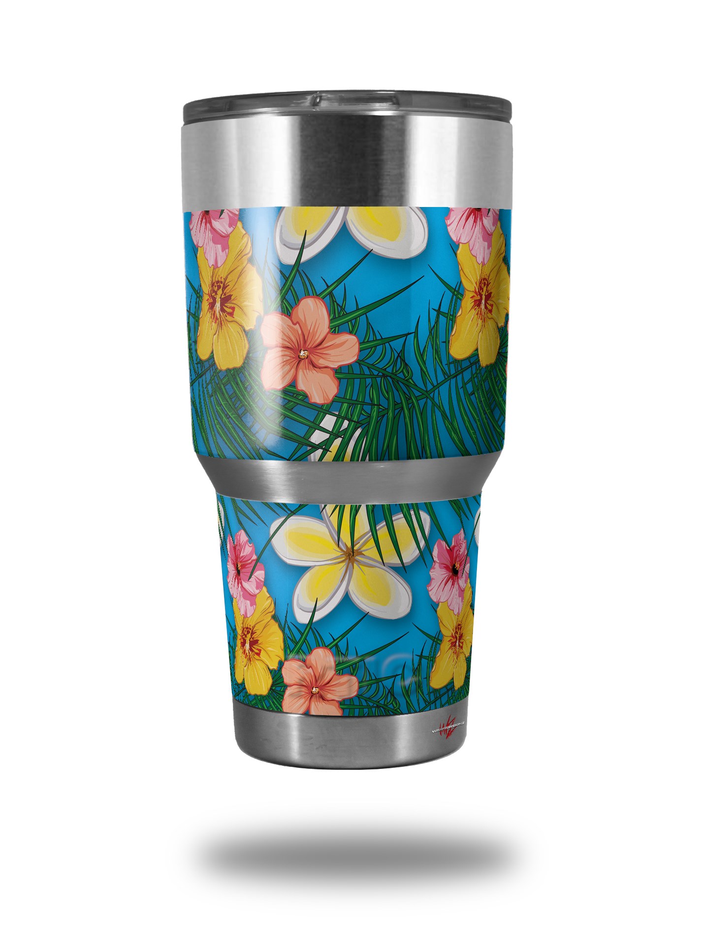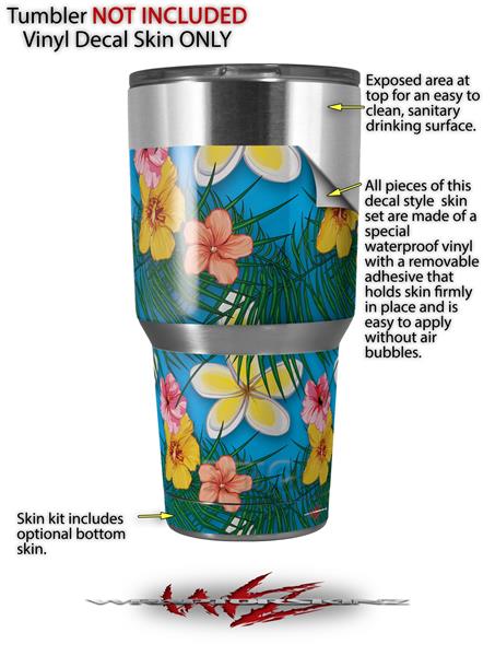 WraptorSkinz Skin Wrap compatible with RTIC 30oz ORIGINAL 2017 AND OLDER Tumblers Beach Flowers 02 Blue Medium (TUMBLER NOT INCLUDED)