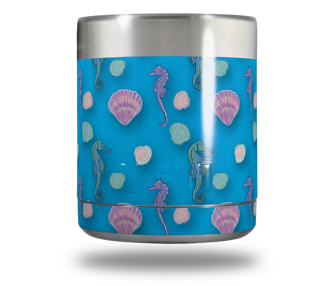 Skin Decal Wrap for Yeti Rambler Lowball - Seahorses and Shells Blue Medium