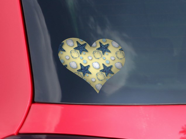 Starfish and Sea Shells Yellow Sunshine - I Heart Love Car Window Decal 6.5 x 5.5 inches
