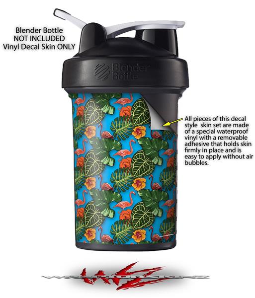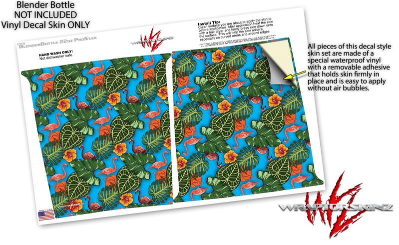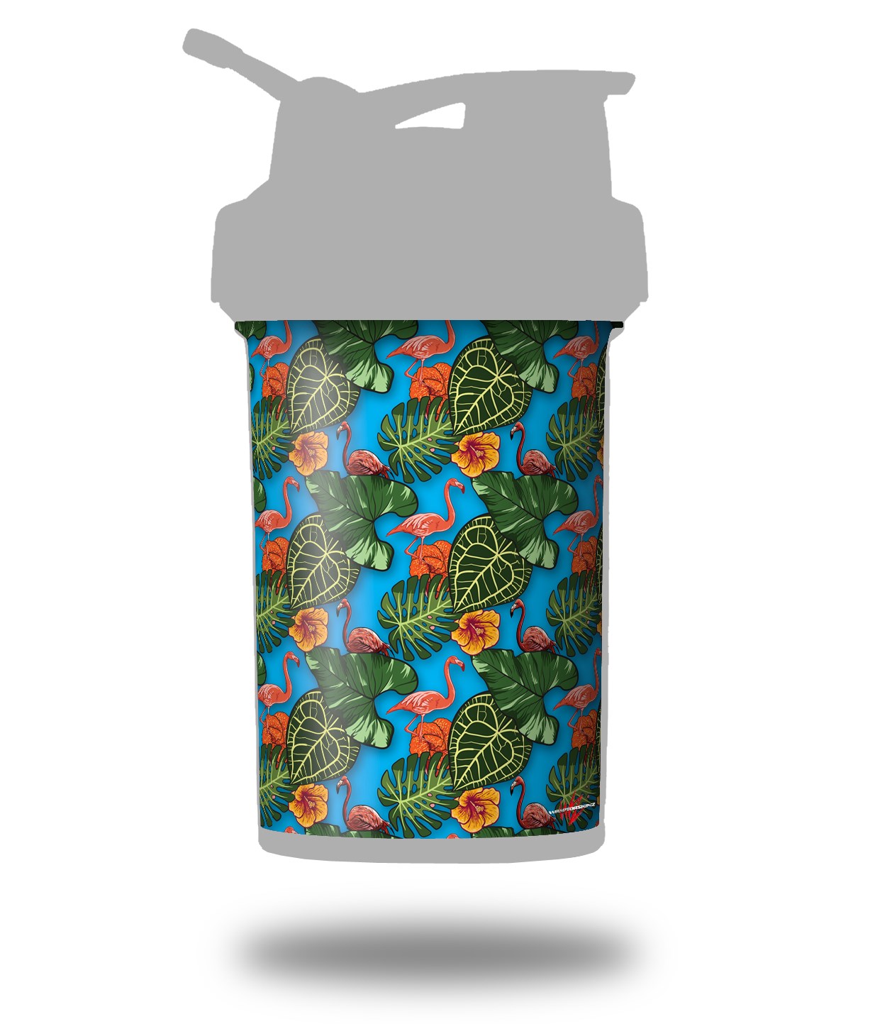 Decal Style Skin Wrap works with Blender Bottle 22oz ProStak Famingos and Flowers Blue Medium (BOTTLE NOT INCLUDED)