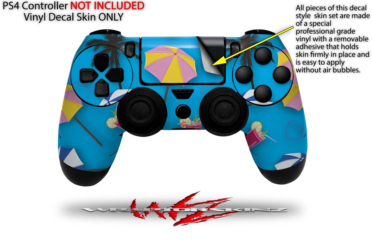 WraptorSkinz Skin compatible with Sony PS4 Dualshock Controller PlayStation 4 Original Slim and Pro Beach Party Umbrellas Blue Medium (CONTROLLER NOT INCLUDED)