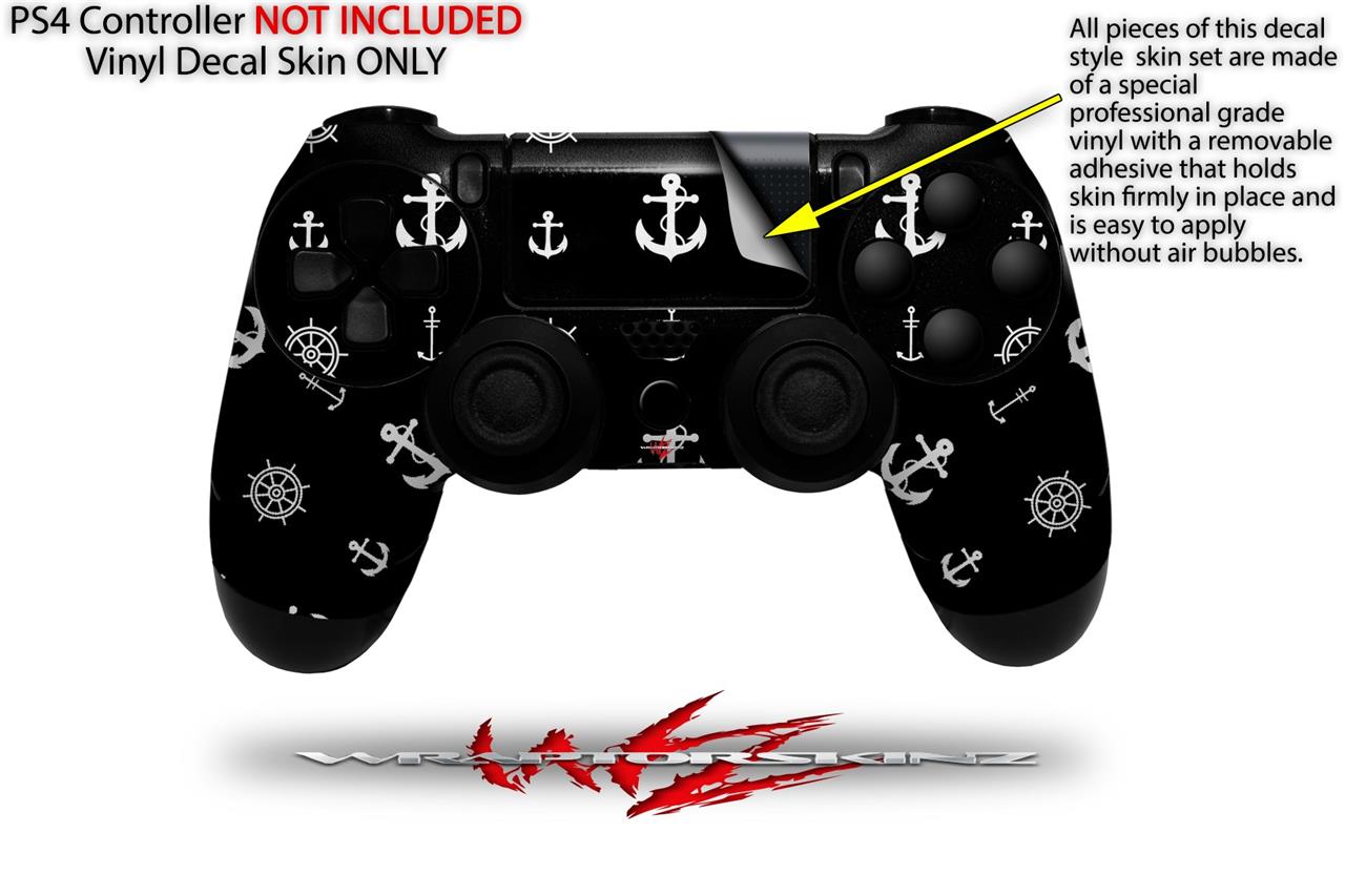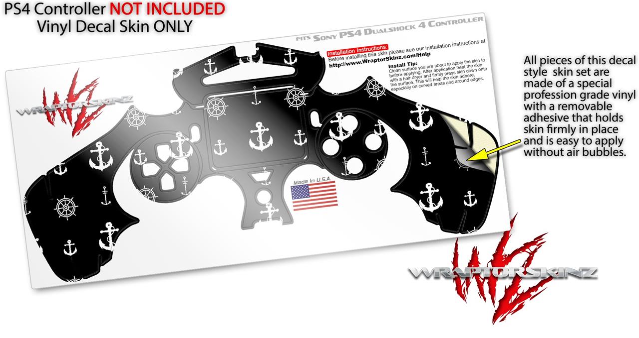WraptorSkinz Skin compatible with Sony PS4 Dualshock Controller PlayStation 4 Original Slim and Pro Nautical Anchors Away 02 Black (CONTROLLER NOT INCLUDED)
