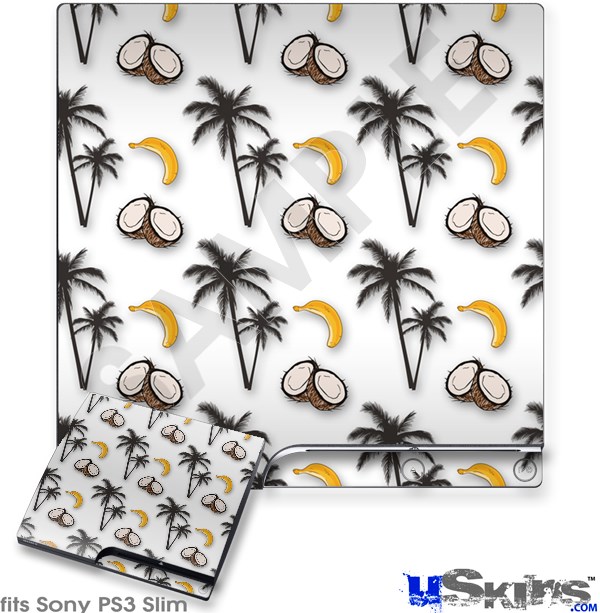 Decal Skin compatible with Sony PS3 Slim Coconuts Palm Trees and Bananas White