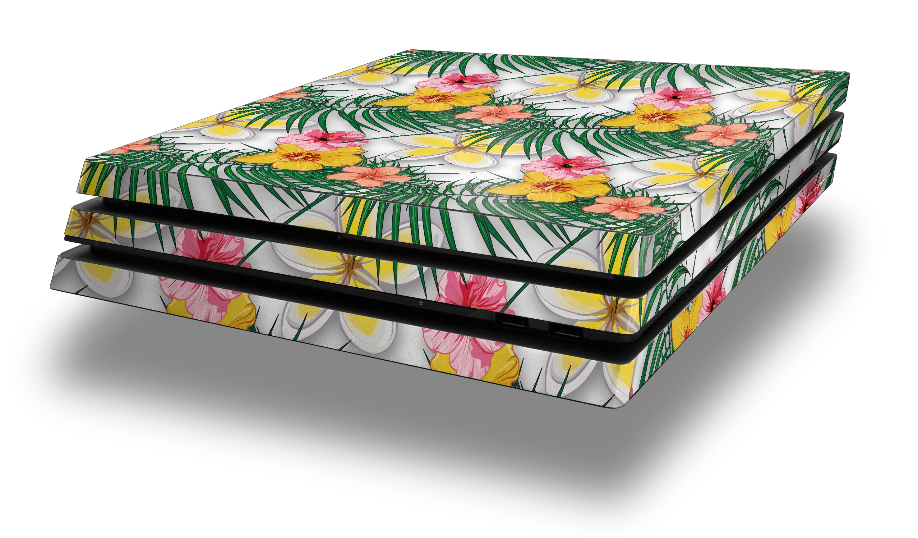 Vinyl Decal Skin Wrap compatible with Sony PlayStation 4 Pro Console Beach Flowers 02 White (PS4 NOT INCLUDED)