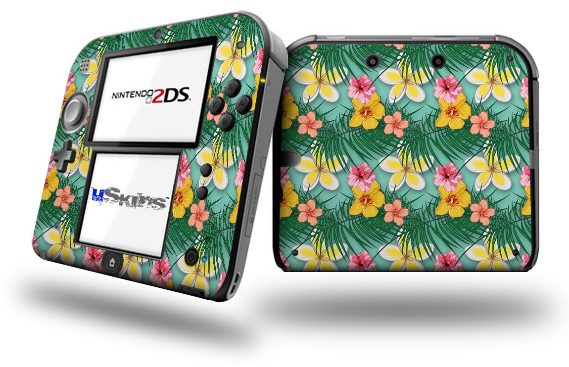 Beach Flowers 02 Seafoam Green - Decal Style Vinyl Skin fits Nintendo 2DS - 2DS NOT INCLUDED