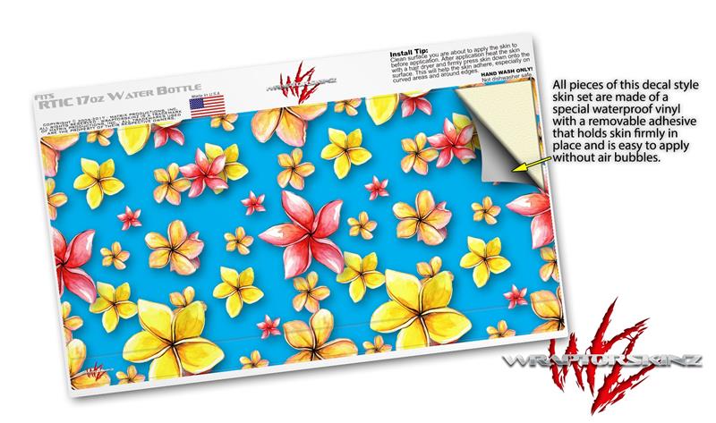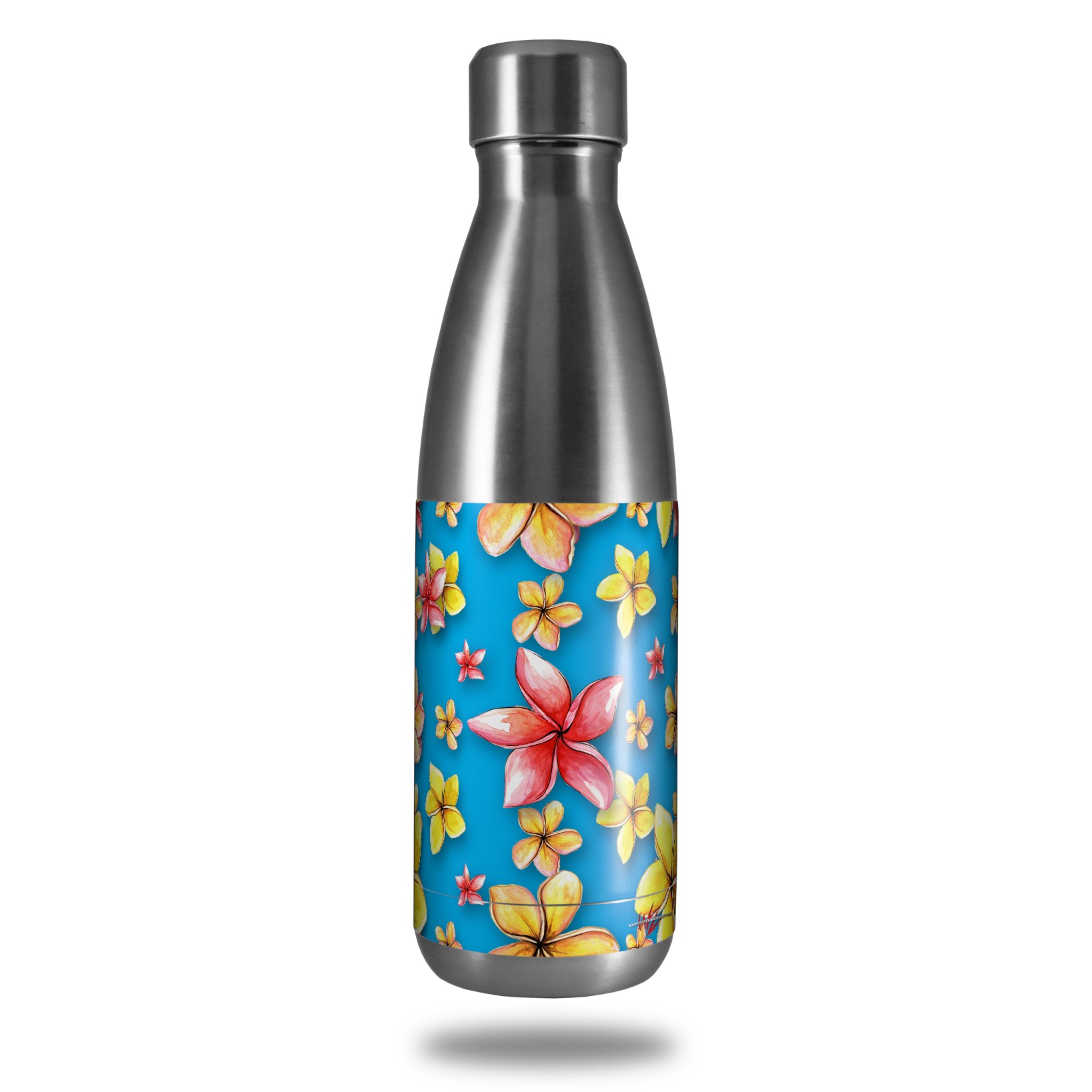 Skin Decal Wrap for RTIC Water Bottle 17oz Beach Flowers Blue Medium (BOTTLE NOT INCLUDED)
