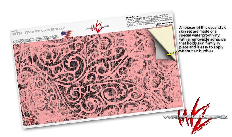 Skin Decal Wrap for RTIC Water Bottle 17oz Folder Doodles Pink (BOTTLE NOT INCLUDED)