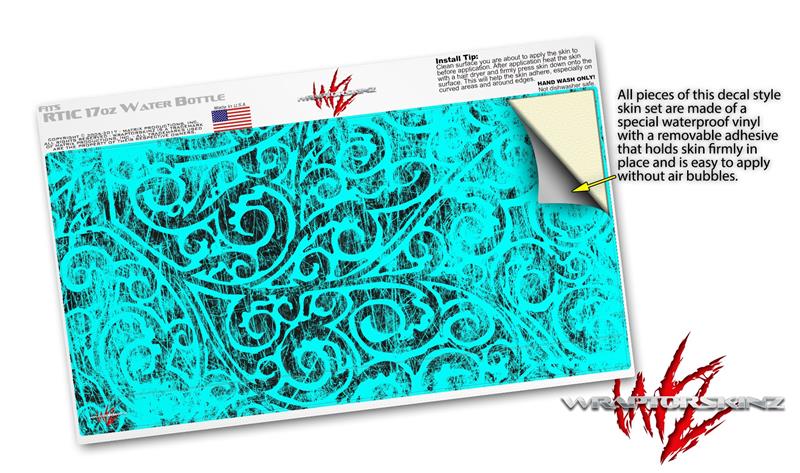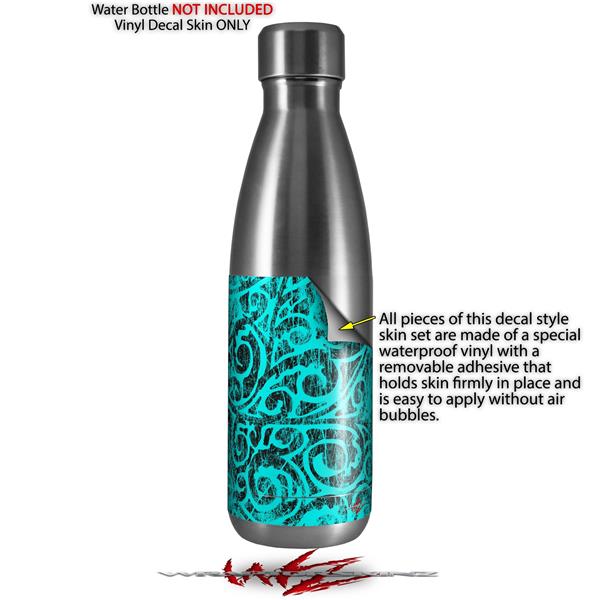 Skin Decal Wrap for RTIC Water Bottle 17oz Folder Doodles Neon Teal (BOTTLE NOT INCLUDED)