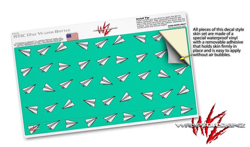 Skin Decal Wrap for RTIC Water Bottle 17oz Paper Planes Turquoise (BOTTLE NOT INCLUDED)