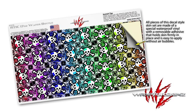 Skin Decal Wrap for RTIC Water Bottle 17oz Splatter Girly Skull Rainbow (BOTTLE NOT INCLUDED)