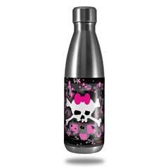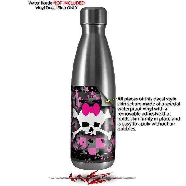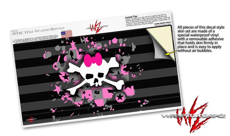 Skin Decal Wrap for RTIC Water Bottle 17oz Pink Bow Skull (BOTTLE NOT INCLUDED)