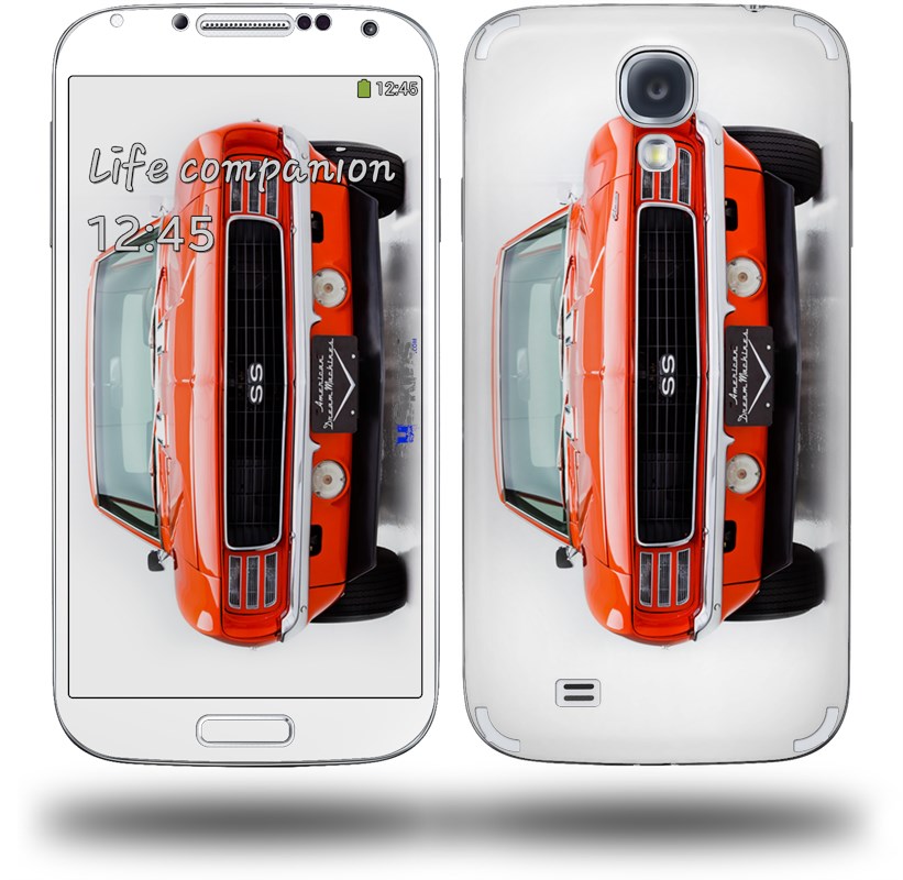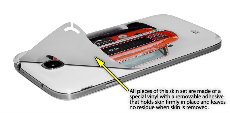 • Decal style vinyl skin covers front and back of Samsung Galaxy S4 phone.
