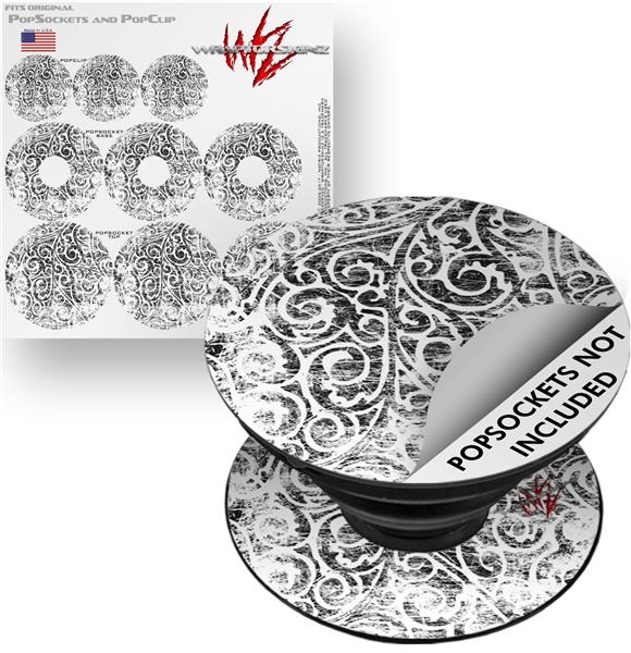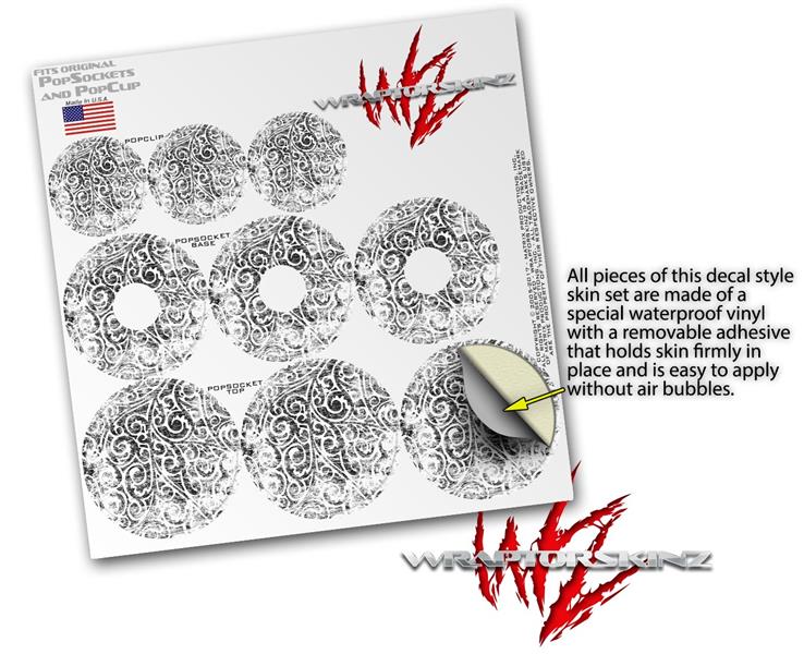 Decal Style Vinyl Skin Wrap 3 Pack for PopSockets Folder Doodles White (POPSOCKET NOT INCLUDED)