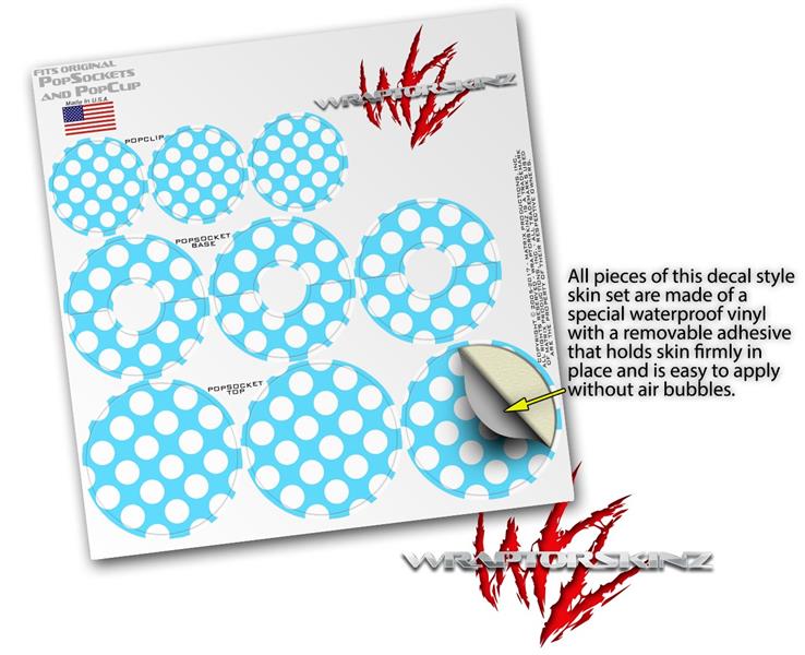 Decal Style Vinyl Skin Wrap 3 Pack for PopSockets Kearas Polka Dots White And Blue (POPSOCKET NOT INCLUDED)