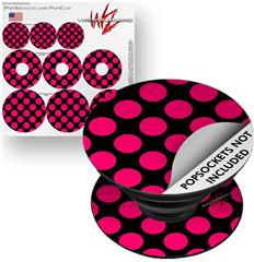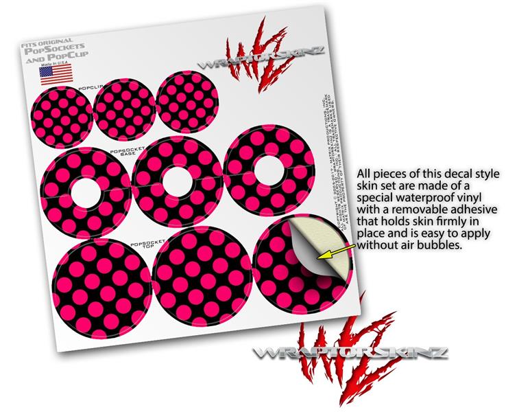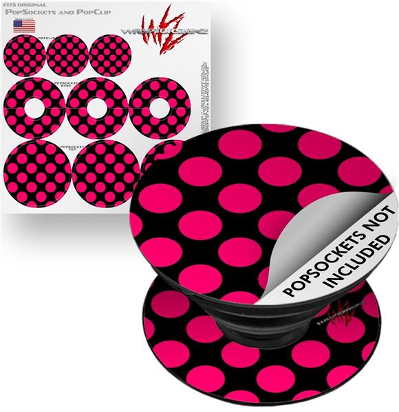 Decal Style Vinyl Skin Wrap 3 Pack for PopSockets Kearas Polka Dots Pink On Black (POPSOCKET NOT INCLUDED)