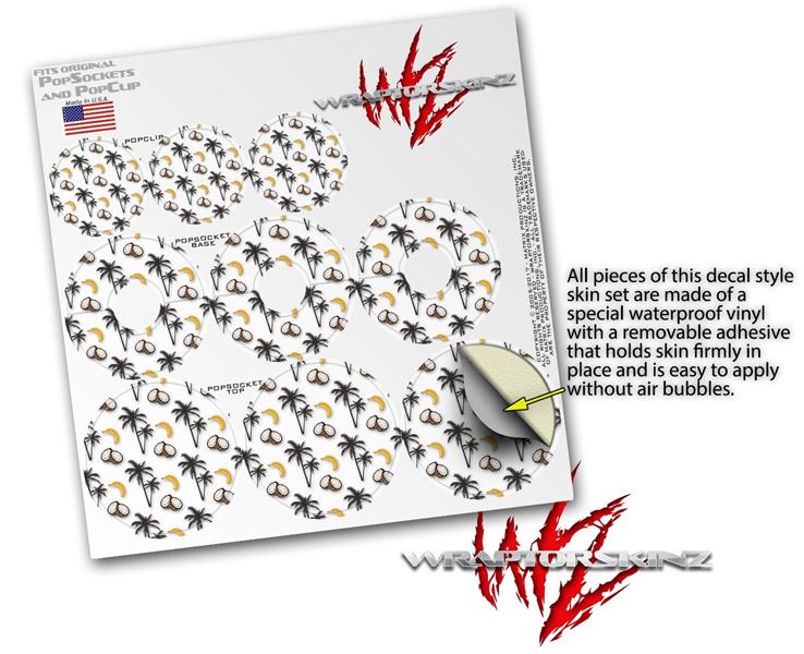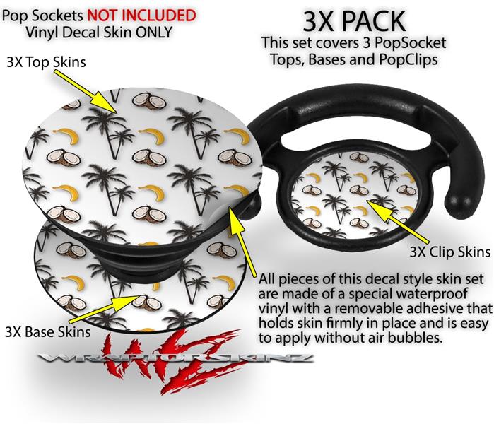 Decal Style Vinyl Skin Wrap 3 Pack for PopSockets Coconuts Palm Trees and Bananas White (POPSOCKET NOT INCLUDED)