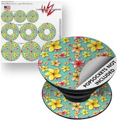 Decal Style Vinyl Skin Wrap 3 Pack for PopSockets Beach Flowers Seafoam Green (POPSOCKET NOT INCLUDED)
