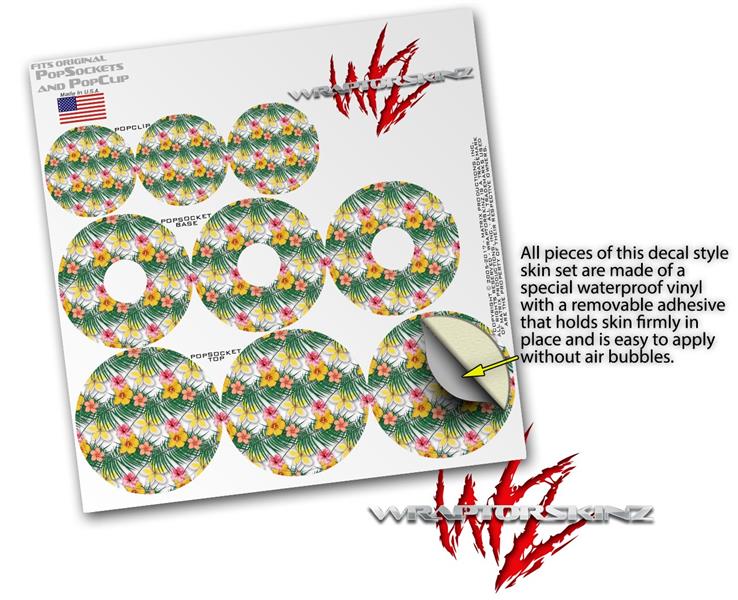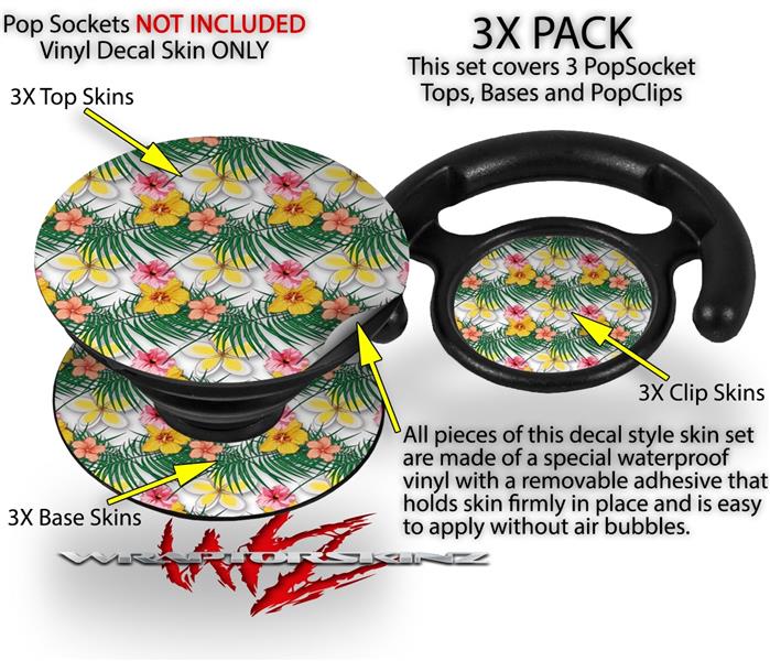 Decal Style Vinyl Skin Wrap 3 Pack for PopSockets Beach Flowers 02 White (POPSOCKET NOT INCLUDED)