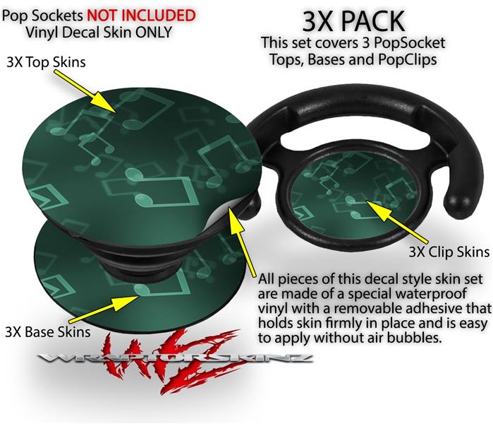 Decal Style Vinyl Skin Wrap 3 Pack for PopSockets Bokeh Music Seafoam Green (POPSOCKET NOT INCLUDED)